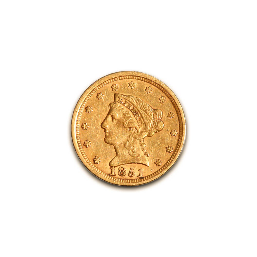 The history of the $2.5 Gold Liberty coin series dates back to its introduction in 1840. The Liberty Head design replaced the Classic Head design, reflecting a shift towards a more refined and detailed artistic approach in American coinage. By 1851, the United States was experiencing significant growth and change, with the California Gold Rush in full swing, influencing the availability of gold and the production of gold coins. This period saw the increased circulation of gold coinage, which played a crucial role in the nation's economy.