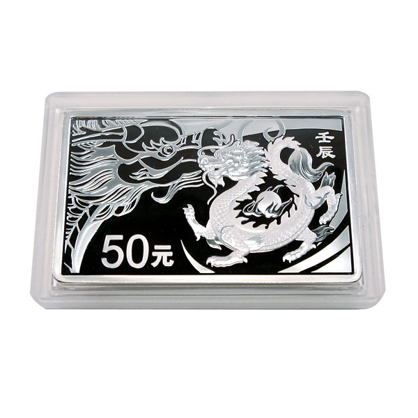 - China 2012 Year of the Dragon 5 oz Silver Proof Coin (Rectangular w Box & COA)