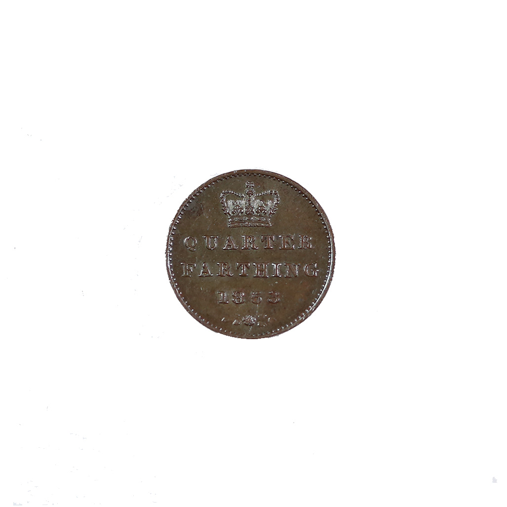 The history of the 1/4 Farthing coin dates back to the early 19th century when the British government sought to address the challenges posed by inflation and the growing economy. The introduction of smaller denominations like the 1/4 Farthing was part of a broader effort to provide the public with more practical currency for everyday transactions. The coin was officially minted as part of a reorganization of British coinage that aimed to simplify the monetary system and accommodate the needs of consumers and merchants alike. The 1/4 Farthing was initially introduced in 1839, and the 1853 issue reflects the ongoing adaptation of currency to meet the demands of a growing population.