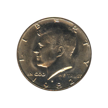 Gilroy Roberts and Frank Gasparro were the sculptors who had the honor of designing the Kennedy Half Dollar. Needing a design quickly, the US Mint approved of a design the two had created for a presidential medal that was liked by the late president. His widow, Jacqueline Kennedy, wanted his portrait to be on the half dollar denomination. In just one short month, a new half dollar was being minted by the millions, and the public was ready for it. President Kennedy is on the obverse, as well as the coin's date of mintage. The reverse displays the US National Seal, which is an eagle with outspread wings and talons holding onto olive branches and arrows. The coin's 50 cent denomination is also inscribed on the reverse. The 1982-D Kenned Half Dollar has a mintage of just over 13 million and is in brilliant uncirculated condition. The Denver Mint heavily participated in the production of the Kennedy Half Dollar from start to finish and placed its mint-mark on the reverse of every half dollar.