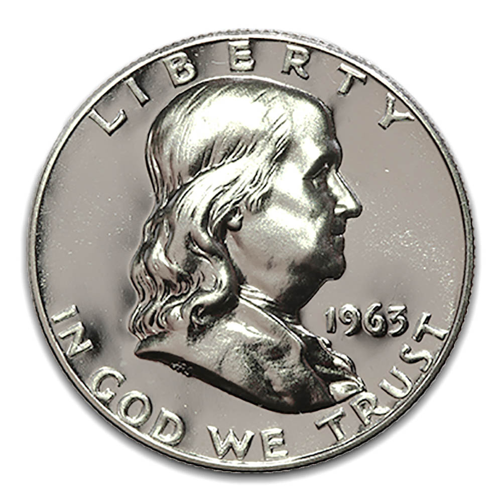 The Proof Franklin Half Dollars are highly sought after by experienced collectors for a few appealing reasons. The first being its highest mintage is still much lower than the average mintage of a BU Franklin Half. Since the Philadelphia Mint was the only mint to produce these numismatic gems, they made sure to keep the mintage modest, so they wouldn't have a ton of leftovers. What resulted was a rare series with beautifully pristine mirror-like finishes and 90% silver that appeals to even the pickiest investor. The 1963 Proof Franklin Half Dollar was the final year for the Franklin Half Dollars, before they would be replaced by the Kennedy half Dollar.