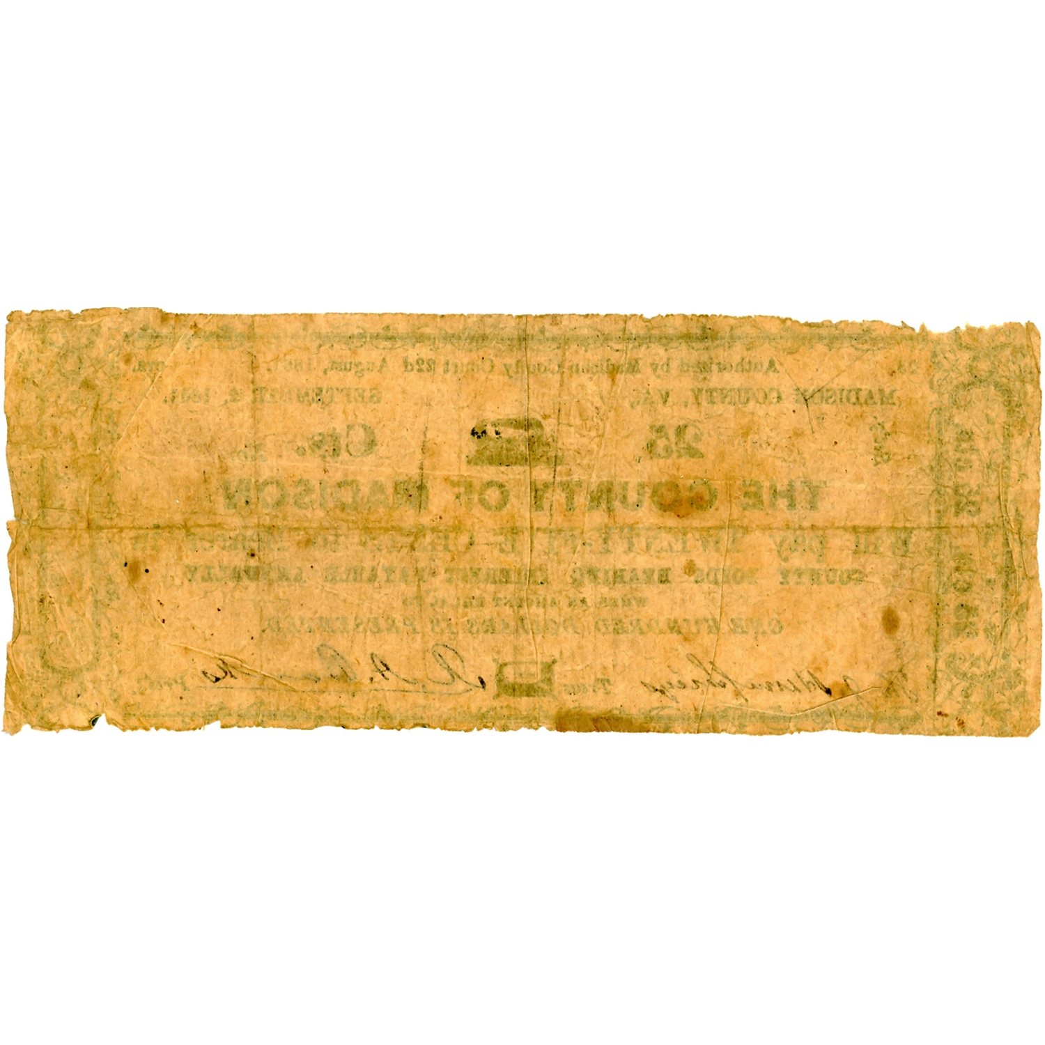 Understanding the minting location of this note, Madison County, Virginia, adds depth to its historical context. Virginia was a significant Confederate state during the Civil War, and the issuance of currency by local governments within the state was a response to the economic challenges brought about by the conflict. Madison County's role in this process reflects the broader economic and social impact of the war on Southern communities.